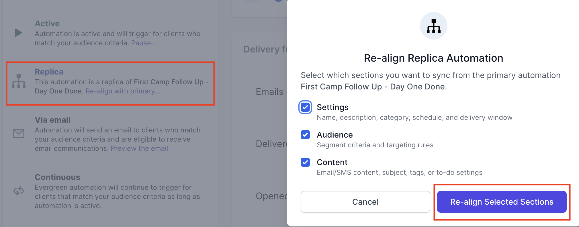 You may choose to fully reset the automation or selectively re-align specific sections: